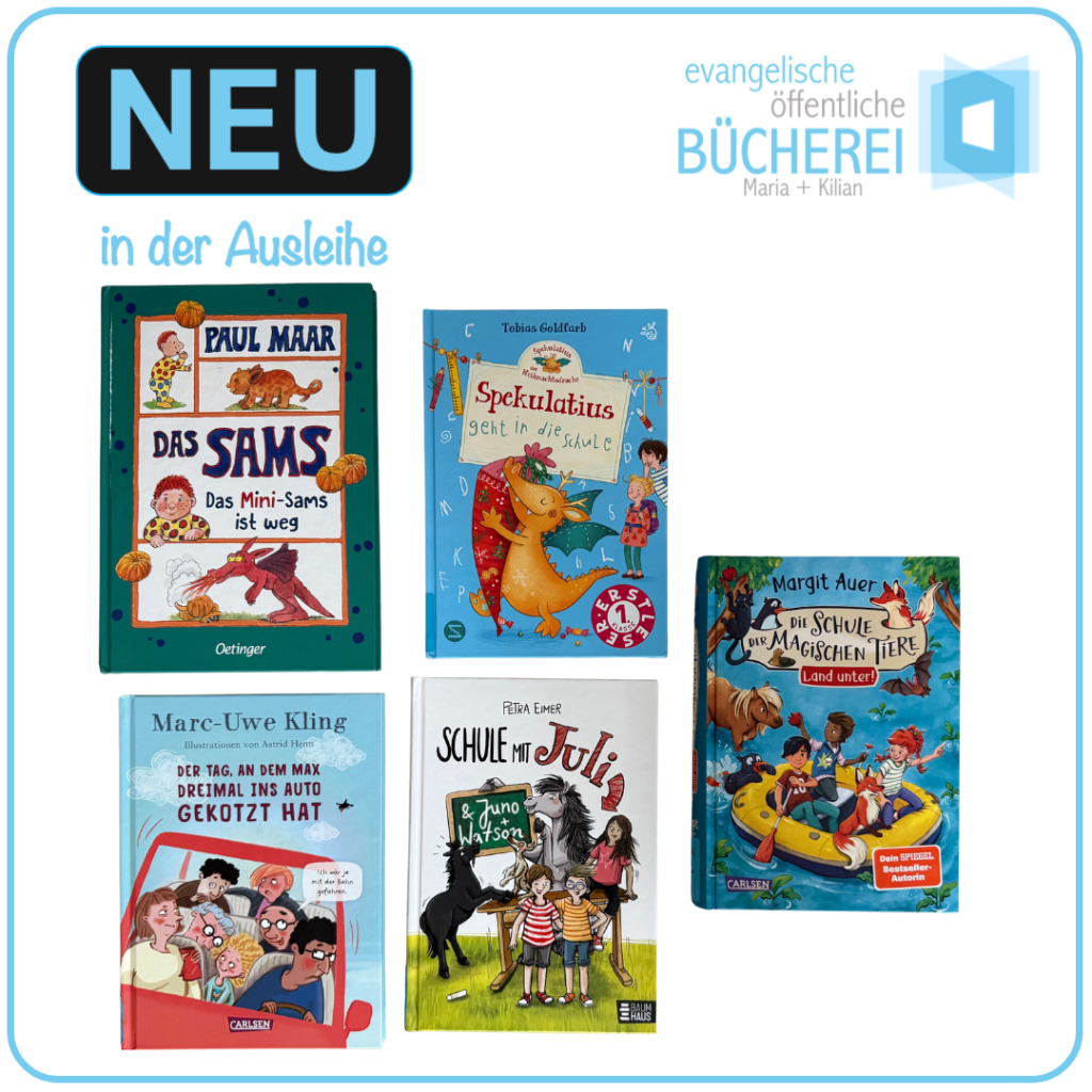 Die evangelische öffentliche Bücherei Maria+Kilian hat sich dieses Jahr beworben und wurde mit einem Lesezeichen belohnt. Darüber freuen wir uns soo sehr, dass wir schon wieder neue Bücher, Tonies usw. für euch aussuchen, die wir von diesem Geld anschaffen möchten.